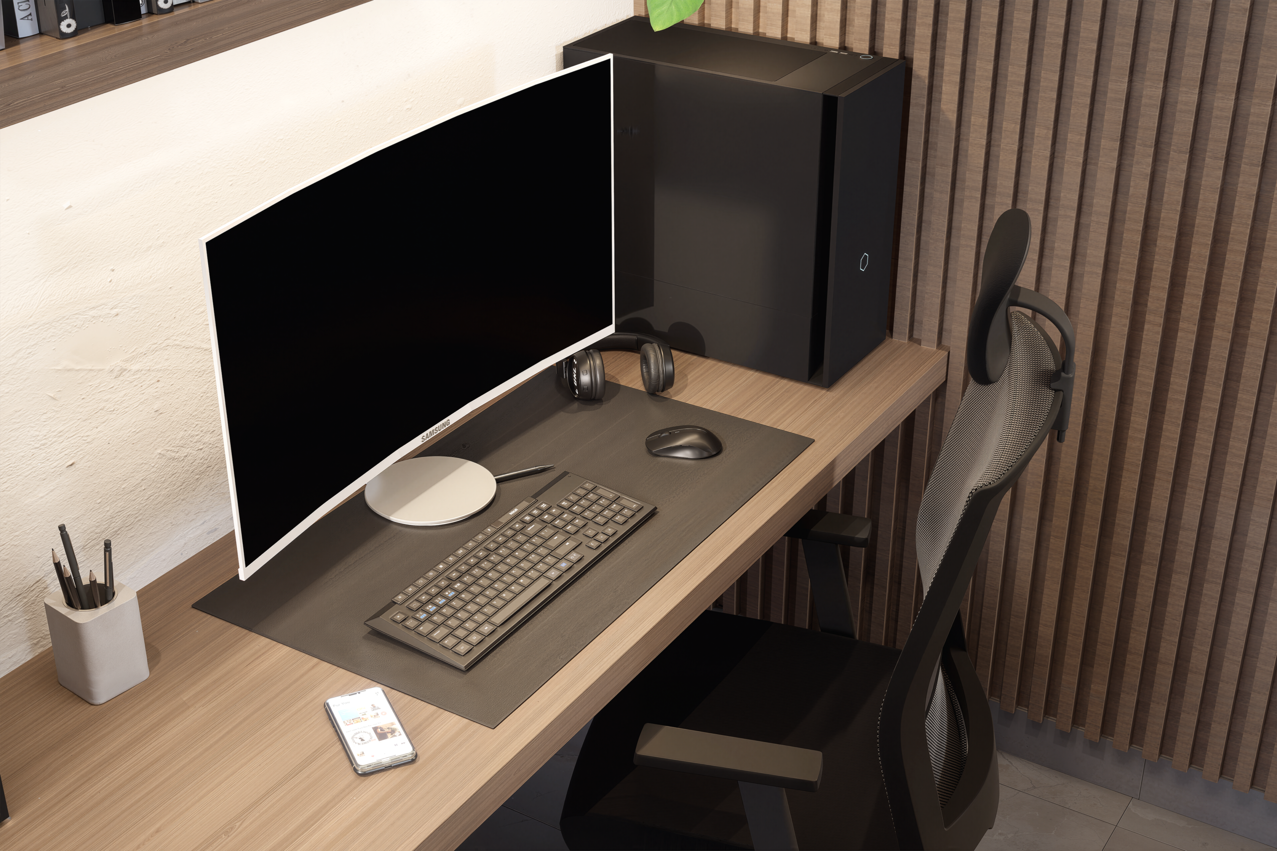 Desarrollada en un solo nivel, la propuesta responde a una necesidad clara: crear un espacio que funcione como punto de trabajo operativo y, al mismo tiempo, como sala de presentación para clientes. El diseño contemporáneo se materializa a través de líneas limpias, integración visual de almacenamiento oculto y una distribución que privilegia la circulación fluida y la percepción de amplitud.